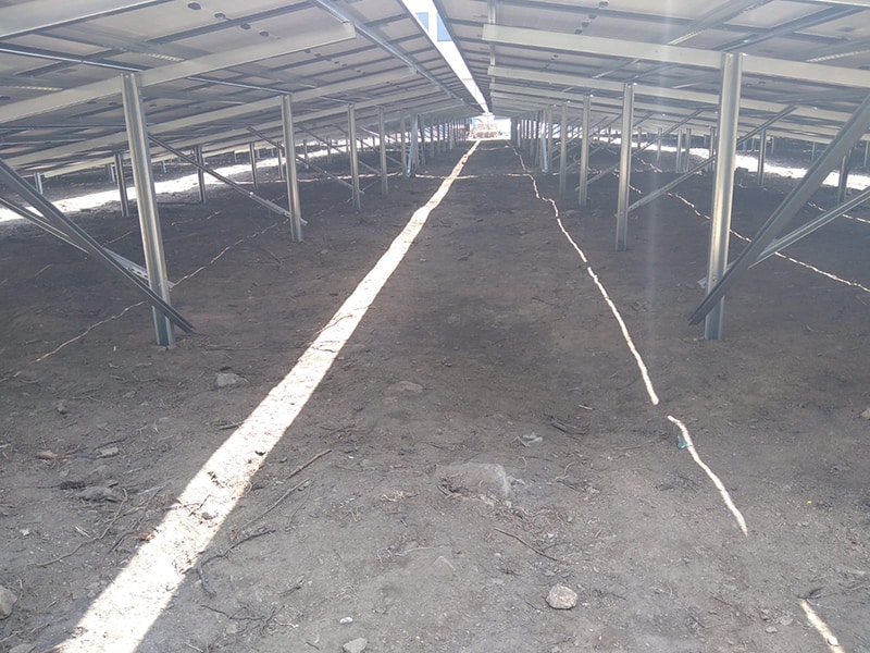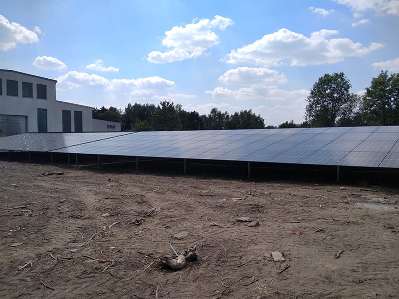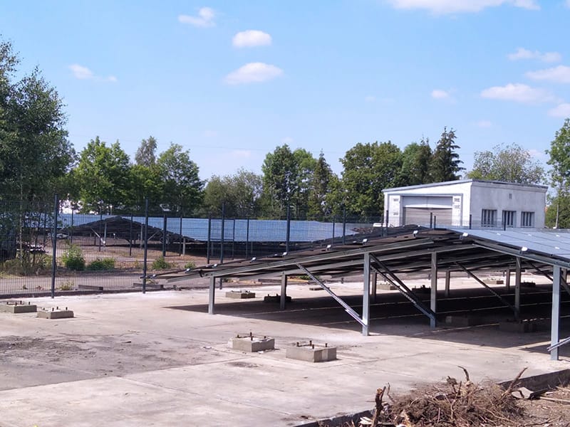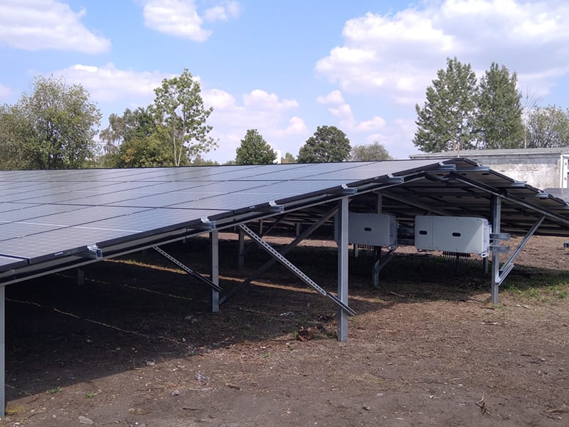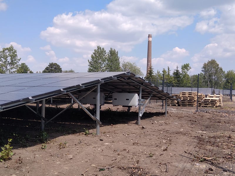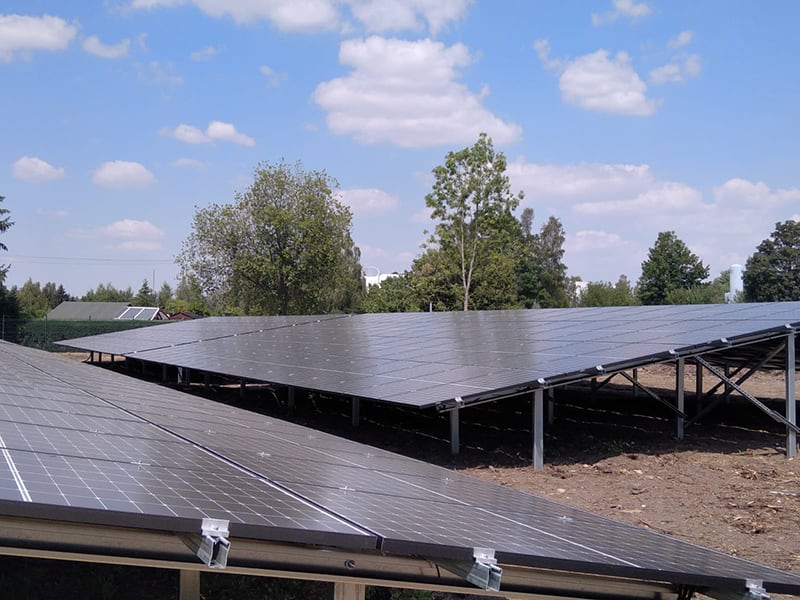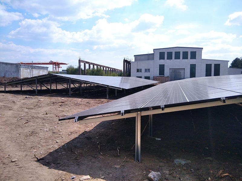 Az oszlopok pneumatikus Gayk vibroverő géppel kerültek a földbe, amely technológia biztosítja a szerkezet hosszú távú stabilitását és gyors telepíthetőségét. A tartóprofilok tűzihorganyzott acélból készültek, amelyek ellenállnak a korróziónak és az időjárási hatásoknak. A paneleket a K2 Systems német gyártó által biztosított alumínium bilincsek rögzítik, amelyek 6063 T66 EN755-9 ötvözetből készültek – ez garantálja a tartósságot és a biztonságos rögzítést.