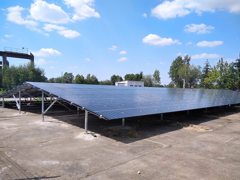 Modern kelet–nyugat tájolású fotovoltaikus rendszer – nagyteljesítményű telepítés ipari célokra